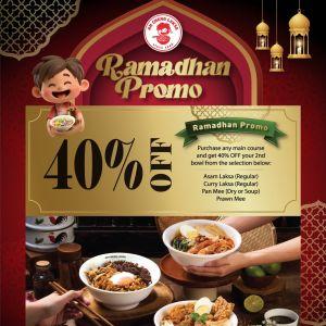 Celebrate with the Ah Cheng Laksa Ramadan Promotion! Enjoy 40% OFF your 2nd bowl (10am-5pm) and Buka Puasa Combos from RM59.90 with Free Flow Sirap Ais.