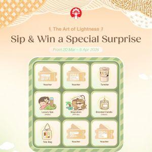 Join the CHAGEE Sip & Win promotion from 20 March - 5 April 2026! Spend a minimum of RM10 on the CHAGEE APP to win a RM1980 Staycation, Luxury Spa, Tote Bags, and vouchers.